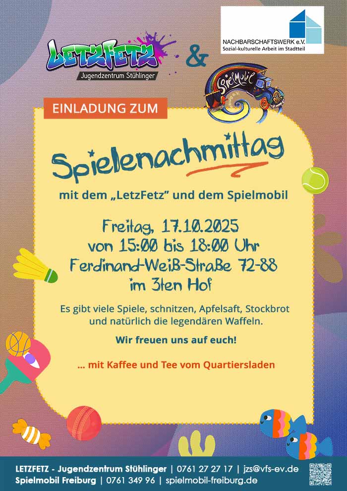 Mit dabei sind das Spielmobil, das Jugendzentrum im Stühlinger »LetzFetz« und der Quartiersladen.